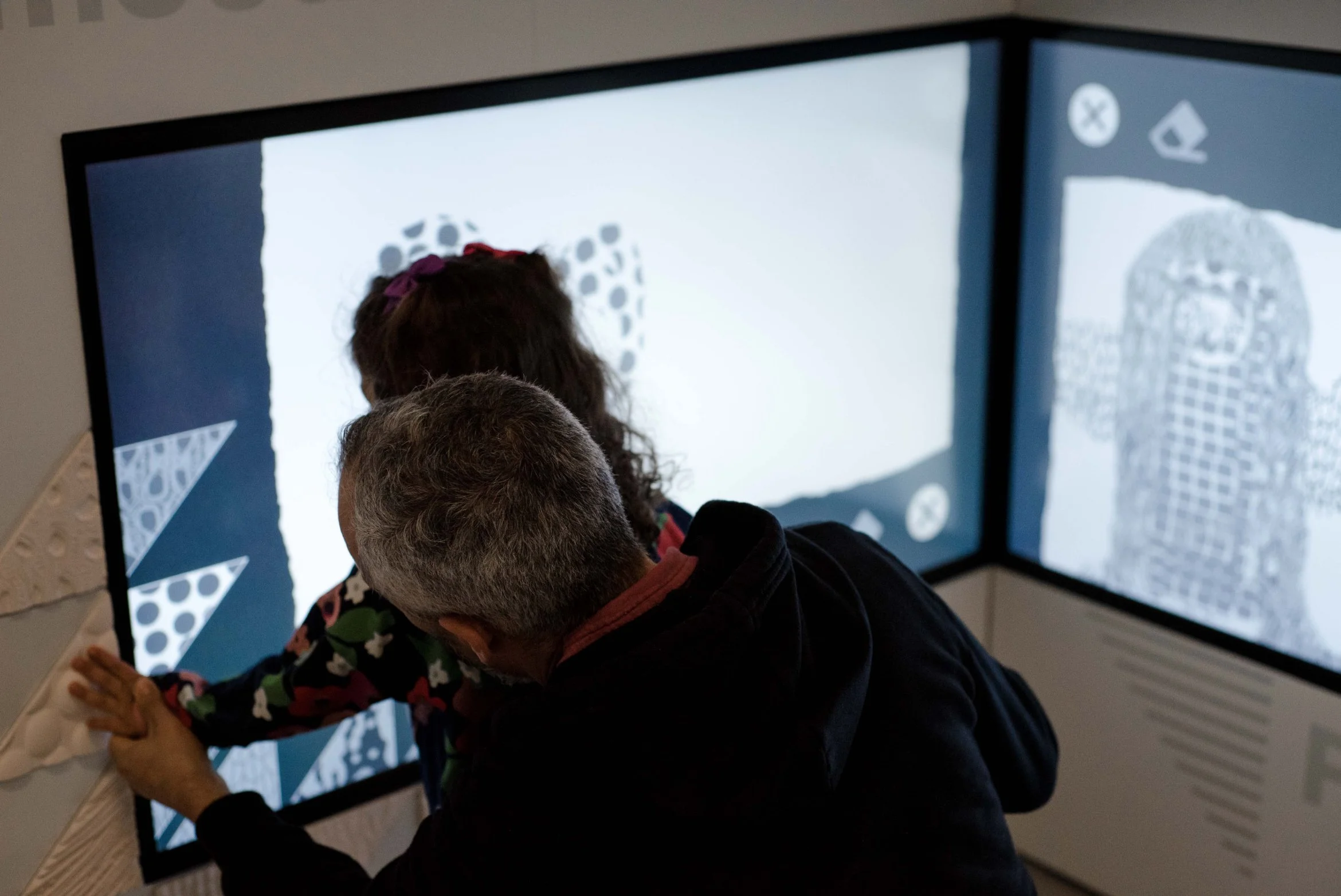 Evocative of texture rubbings, in this module children run their hands across physical textural clay tiles then translate those visually through interactive touchscreens creating multi-layered digital rubbings. Each of the six textures was derived from materials found in FAMSF collections. This activity helps develop a new descriptive vocabulary to make the connection between how something feels and its graphic representation.